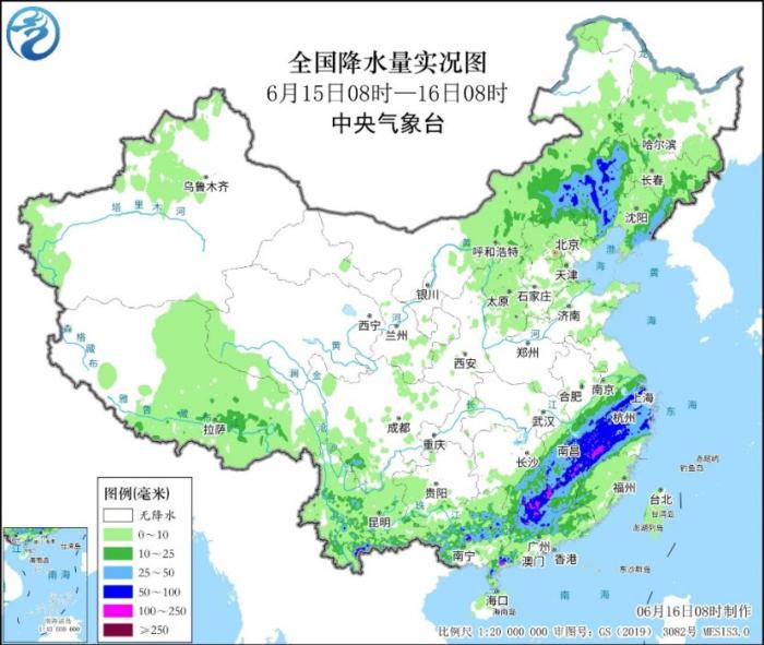 中新网6月16日电 据中央气象台网站消息,昨日,南北方均有强降雨出现,气象监测显示,广东北部、湖南东南部、江西中东部、安徽东南部、浙江中西部、上海等地出现暴雨,局地大暴雨;内蒙古东南部、辽宁西部、吉林西部等地出现大到暴雨。